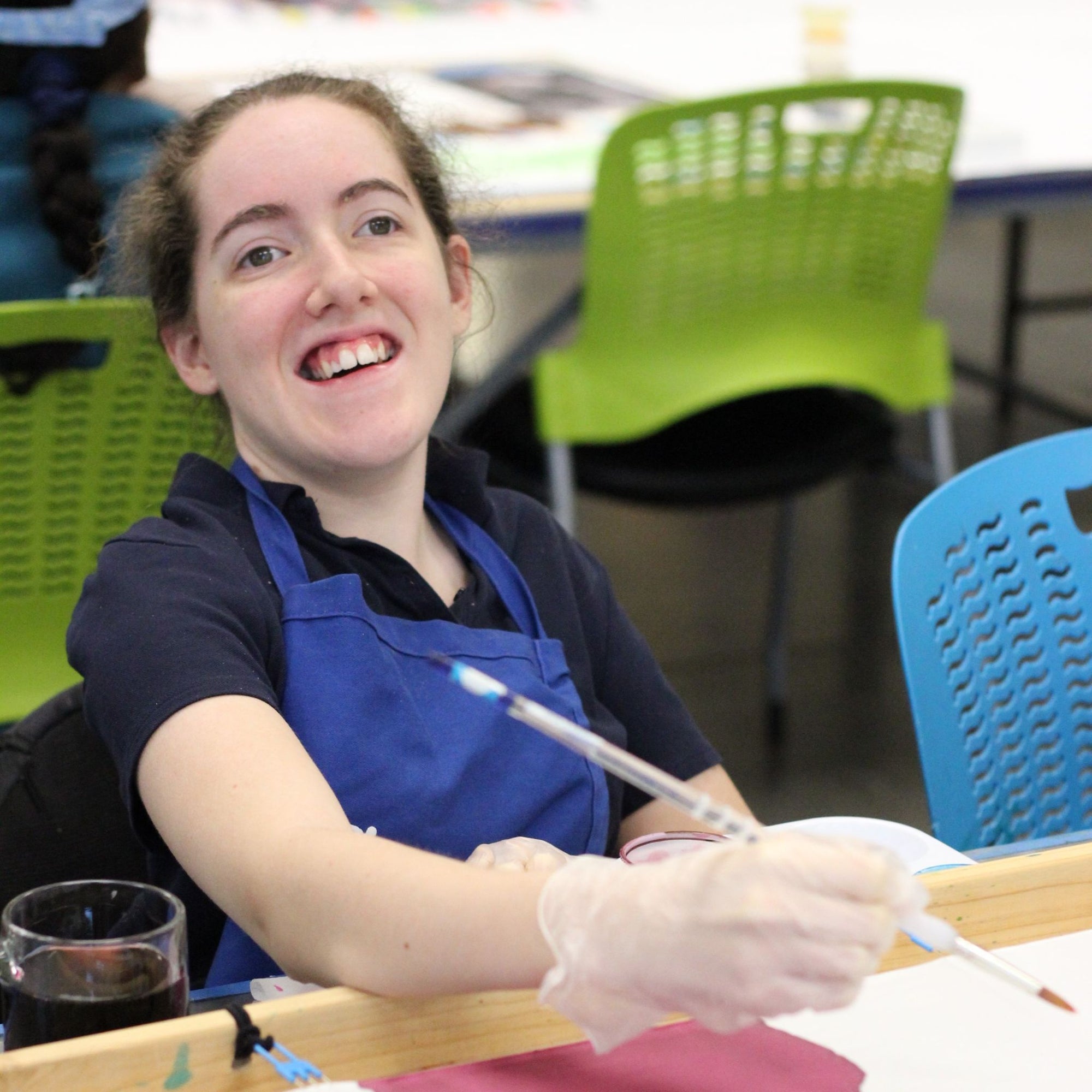 Kaitlyn has her own unique style and has mastered her own watercolor technique. She paints shapes, placing them in patterns, then fills in the negative space with splashes of color. Her works, just like her smile, are bright and inviting.