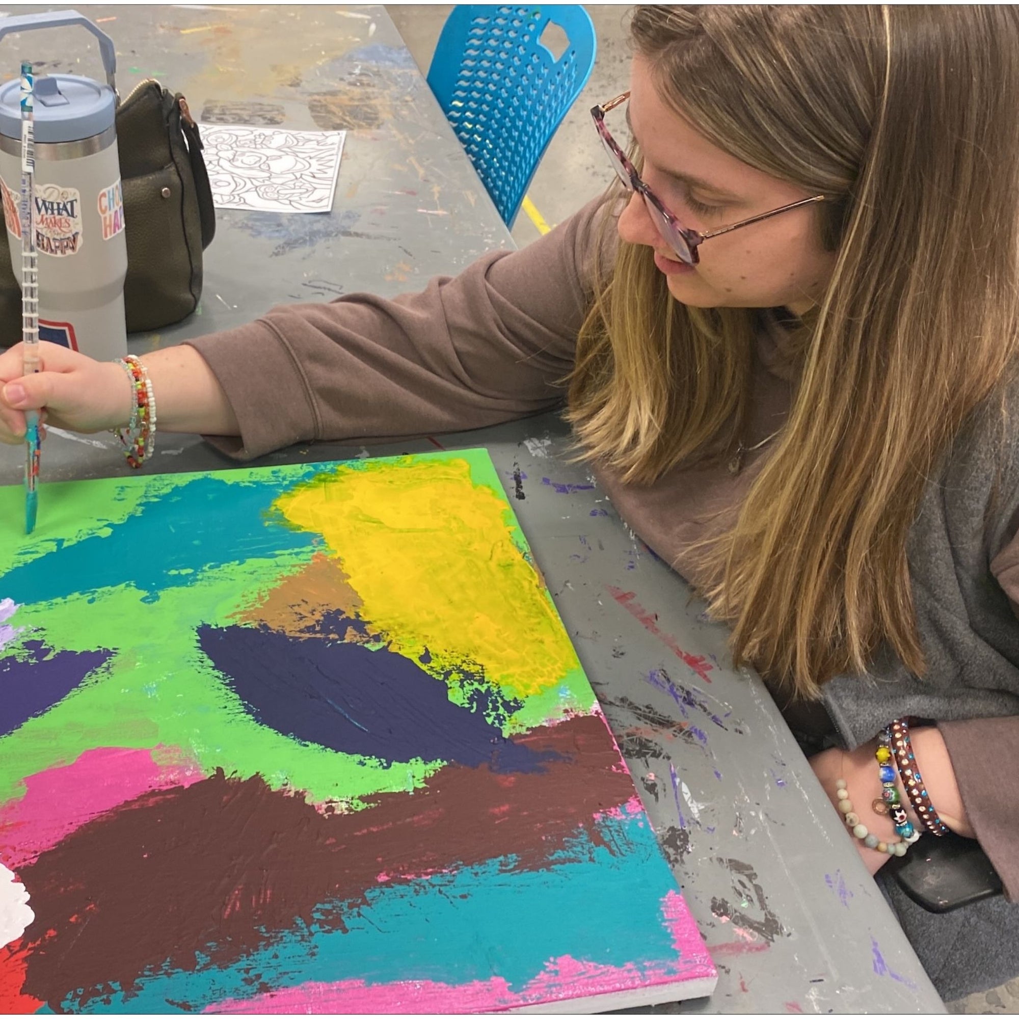 Taylor is quiet and a timid soul who finds inspiration in the kaleidoscope of bright colors and experimentation of abstract art. Though she is soft-spoken and an introverted individual, when it comes to creating her artwork she is captivated by the use of bright colors.