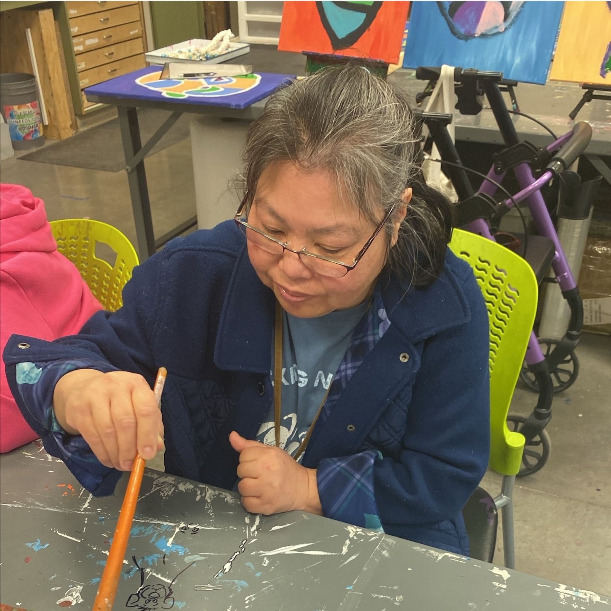Vandi is a positive and energetic artist. Her chipper personality brings out bright, vibrant colors through her abstract art. She enjoys trying new art methods,but expressing herself freely through abstracts is what she enjoys the most.