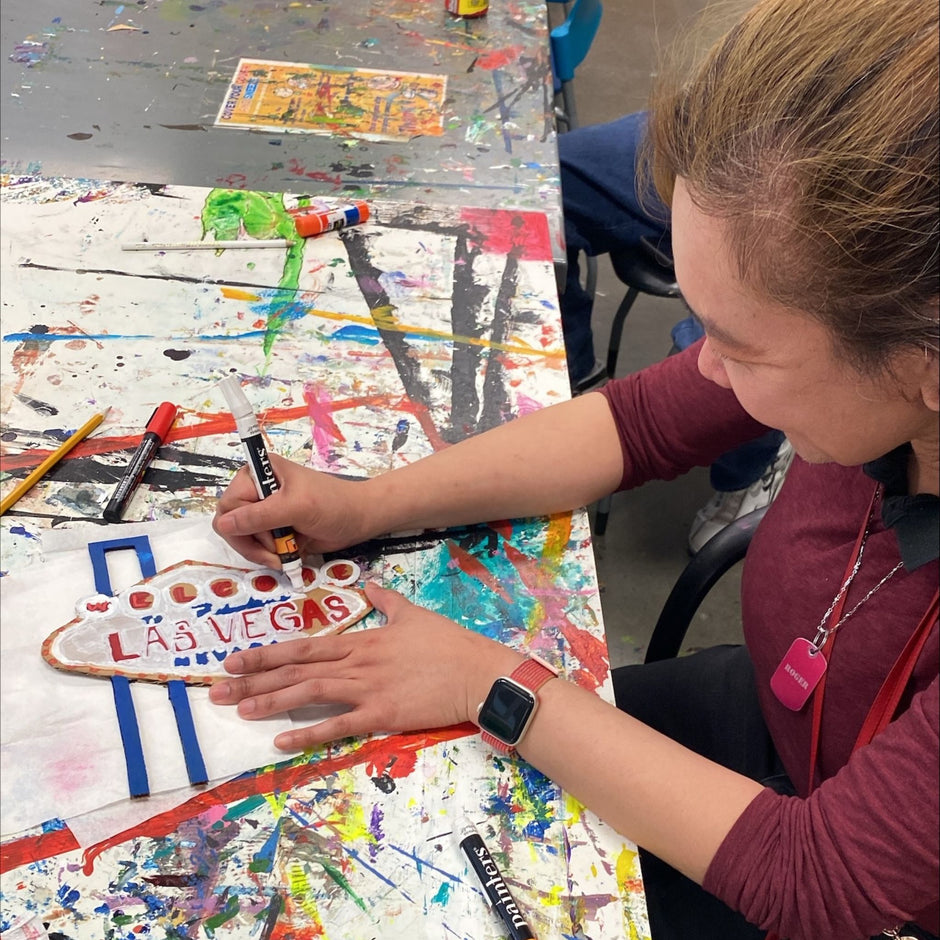 OV Artworks Studio is a division of Opportunity Village, born from the Boyd Gaming Fine & Performing Arts Program at Opportunity Village – a nonprofit organization proudly serving people with intellectual and developmental disabilities for more than 70 years. Since 1954, Opportunity Village has been dedicated to helping people discover the best version of themselves. Through a wide array of programs, including workforce development, community employment, inclusive housing, arts, and social recreation, Opportunity Village empowers people to forge new friendships, explore career opportunities, gain independence, and embrace their passions.