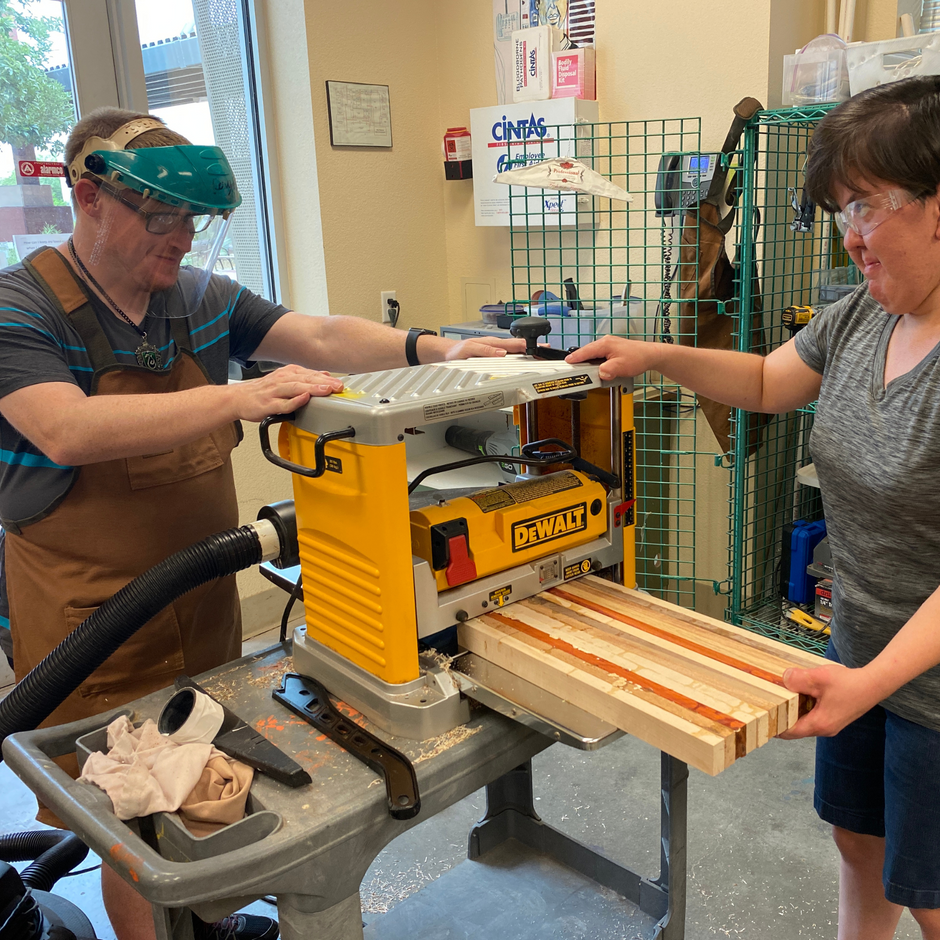 The Boyd Gaming Fine & Performing Arts Program serves people with intellectual and developmental disabilities in music, dance, theater, and visual arts and is the largest, most progressive fine arts program for people with disabilities in Nevada. The program was designed to increase people’s awareness of the arts, support their creative passions, and offer individualized and group training. The program promotes self-expression, social interaction, and develops peer relationships. Participants can showcase their visual artwork for exhibition and sale through OV Artworks Studio, and perform on the stage at Opportunity Village and community events throughout the year.